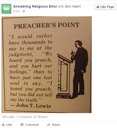 Secondly, the quote says that a preacher would rather offend thousands than to fail to preach the truth to even one individual. Sadly, preachers don’t realize that they’re doing both the entire time.